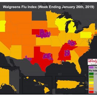 The Walgreens Flu Index™ is a weekly report developed to provide state- and market-specific information regarding flu activity, and ranks those states and markets experiencing the highest incidences of influenza across the country. The Walgreens Flu Index is compiled using the drugstore chain’s weekly retail prescription data for antiviral medications...