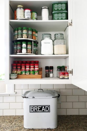 3. Organize the Extras: Alphabetize the rest of your spices so you can find them easily when trying new recipes. Store baking necessities, like extracts and food colors, all in one spot or bin so you can easily find them when whipping up muffins or cupcakes.