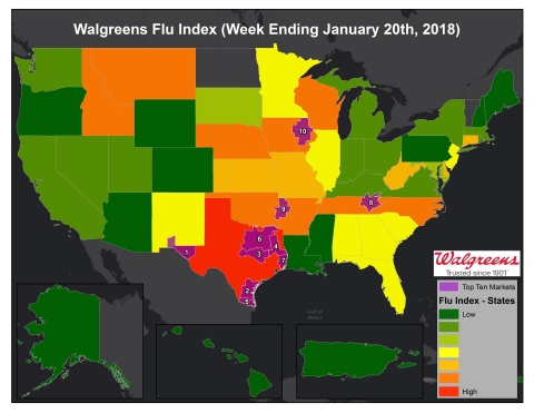 To view this week’s Walgreens Flu Index, maps and other online features, including the ability to search by market name or state, click here.